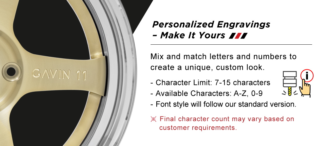 - ※1ピースホイールのフィニッシュ、2ピースホイールのディスクフィニッシュがブライトクリア、ブライトグラファイトグレーの場合は、